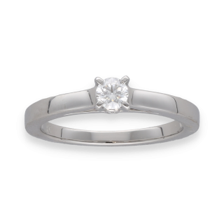Bague Solitaire Boucheron en platine massif de 2017, sertie sur 4 griffes d'un Diamant naturel taille brillant de 0,20 Cts. Couleur : F -VVS . Taille 53. La mise à la taille est possible et offerte. Boite, papiers d'origine. prix neuf : 3400€