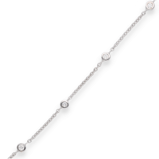 Élégant sautoir en or gris 18 carats massif, serti de 50 diamants taille brillant de 0,05 ct chacun, répartis sur deux faces, pour un total de 2,50 carats de qualité G-VS. Son design raffiné et sa longueur de 80 cm en font un bijou intemporel, idéal à porter seul ou en accumulation.
