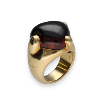 Bague Pomellato modèle Griffe en or jaune 18 carats, sertie d’un grenat à la teinte profonde. Taille 48, création raffinée vers 2010, reflet du savoir-faire italien de la Maison Pomellato.