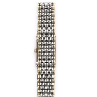 Ce modèle associe subtilement l’or jaune 18 carats et l’acier poli, offrant un contraste lumineux et raffiné.