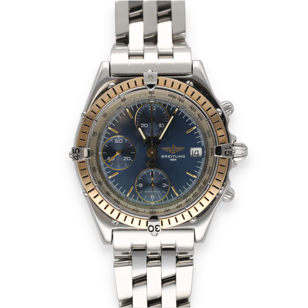 Breitling Chronomat réf. 81950 en or et acier, mouvement automatique. Diamètre 39 mm. Vers 1990. Montre sportive et iconique de la maison Breitling.
