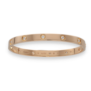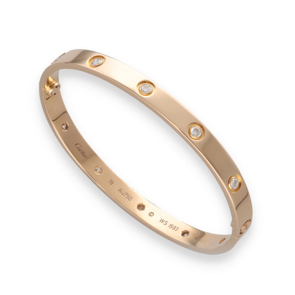 Ce modèle, référence B6040517, est réalisé en or rose 18k et serti de 10 diamants brillants totalisant 0.96 carat. Proposé en taille 19, il incarne l’élégance contemporaine et l’intemporalité de la maison Cartier.