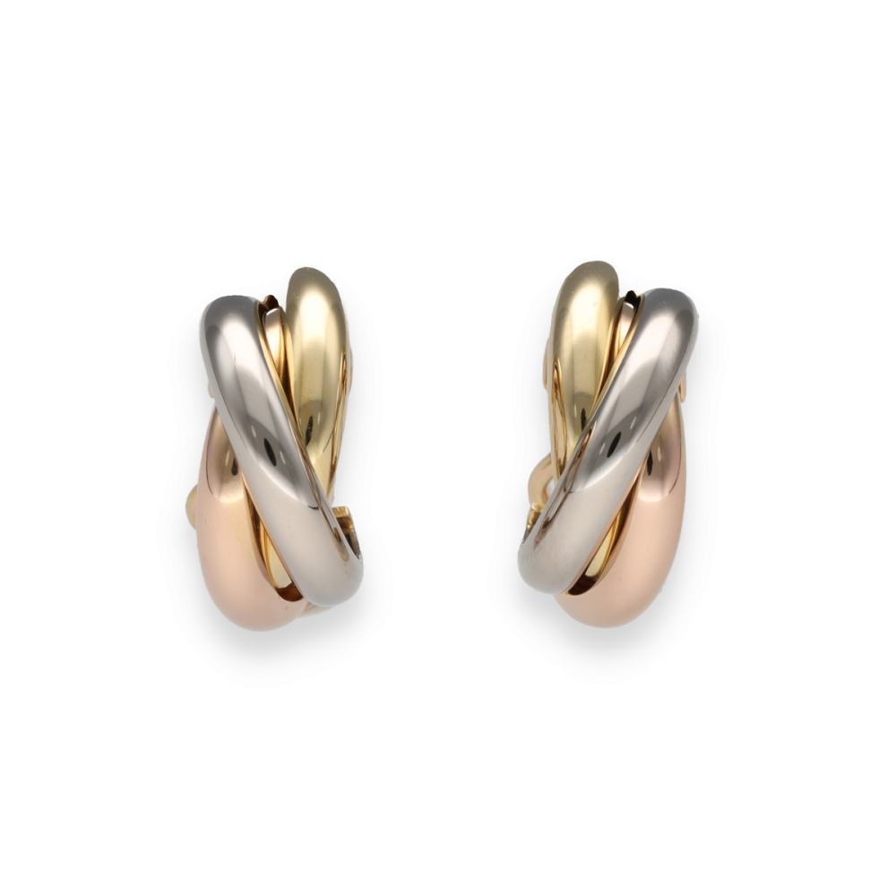 Cette paire de boucles d’oreilles Trinity Classique, réalisée vers 2010, reprend ce design intemporel dans une version délicate et parfaitement proportionnée.