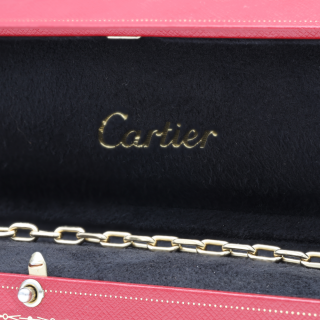 Réalisé en or jaune 18 carats, ce bracelet se distingue par une construction élégante et structurée, alliant modernité et intemporalité. Le motif Santos, immédiatement identifiable, confère au bijou une forte personnalité tout en conservant une grande élégance au porté.