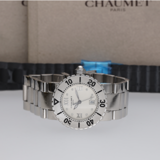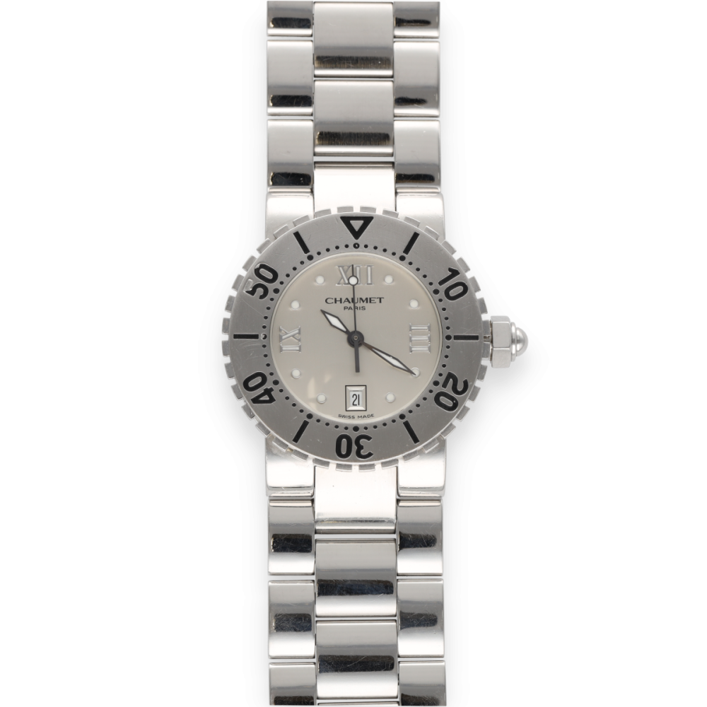 Montre Chaumet Class One en acier, réf. W0662411A, diamètre 33 mm, année 2007, proposée full set (boîte + papiers). Un modèle féminin sport chic signé Chaumet Paris.