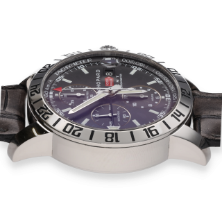 Montre Chopard en acier "Mille Miglia" Ref :168992-3001, Cadran noir avec bracelet crocodile , boucle déployante Acier mouvement automatique GMT Chronographe, Diamètre : 42 mm Boite , papiers d'origine.