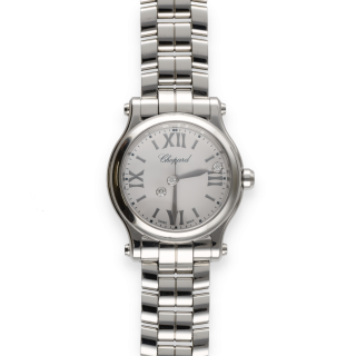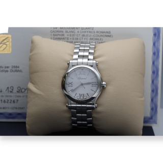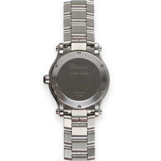 Montre Chopard Happy Sport réf. 278590-3002, acier et inox, mouvement quartz, full set de 2019. Une création féminine emblématique de la Maison Chopard, alliant élégance et modernité.
