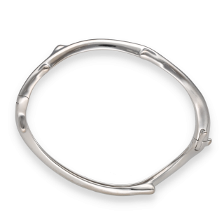 Bracelet Dior Bois de Rose en or gris 18k, modèle iconique inspiré de la tige de rose, célèbre pour son design sculptural et féminin. Pièce moderne et raffinée, idéale portée seule ou en accumulation, présentée en taille 15,5 cm, référence JEDR95032. Poids : 23,70 g.