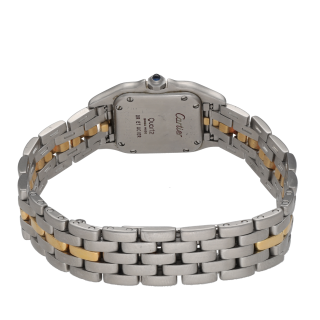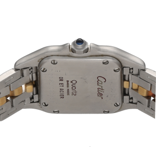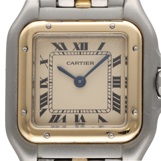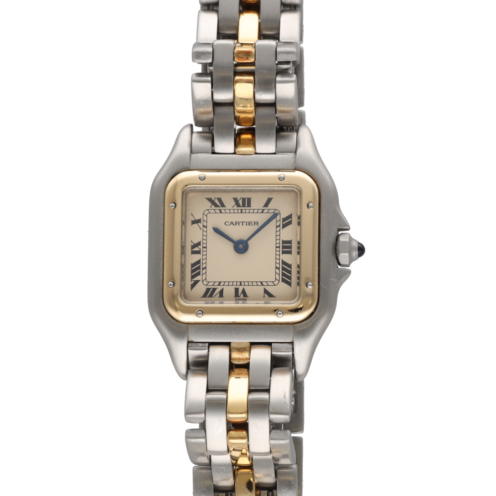 Cette montre Cartier Panthère de dame incarne à merveille l’élégance intemporelle de la maison Cartier. Réalisée en or et acier bicolore 1 rang, elle séduit par son allure raffinée et sa silhouette emblématique, immédiatement reconnaissable. Datant de vers 1995, ce modèle reflète le style chic et sophistiqué des grandes créations horlogères féminines. Son boîtier aux dimensions de 21 x 29 mm lui confère une présence délicate au poignet, tandis que sa longueur de 17,5 cm assure un porté harmonieux. Animée par un mouvement quartz, cette montre allie confort d’utilisation et esthétique précieuse. Son design bicolore en fait une pièce facile à porter au quotidien comme lors d’occasions plus habillées. Véritable classique de l’horlogerie de luxe, la Cartier Panthère reste une montre recherchée pour son style iconique et son raffinement naturel. Cette pièce de caractère est proposée sans boîte d’origine ni papiers d’origine.- Neuf