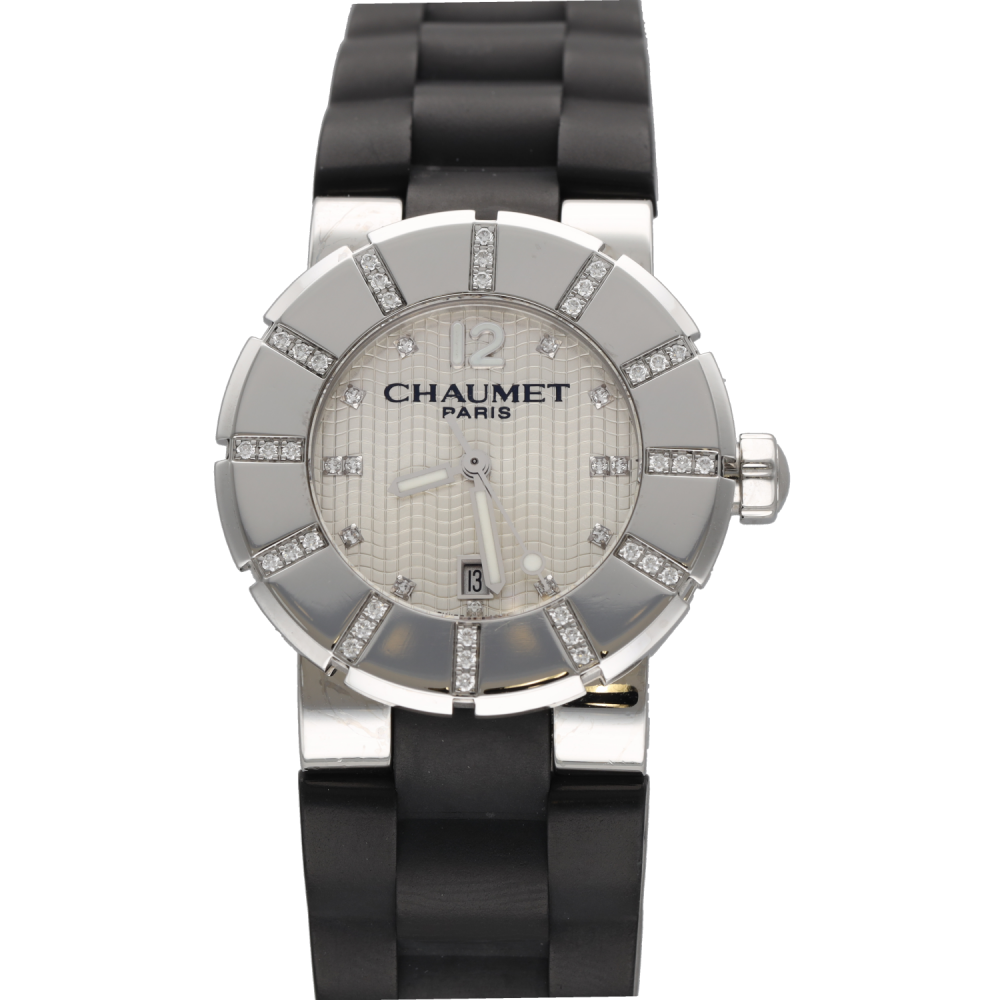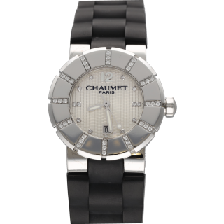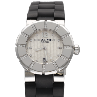 Cette montre Chaumet Class One Ref 622C incarne le raffinement discret propre aux belles pièces d horlogerie joaillière. Réalisée en acier, elle se distingue par une présence élégante et intemporelle, rehaussée par une lunette sertie de diamants ainsi que des index diamants qui captent délicatement la lumière. Son diamètre de 33 mm lui confère un bel équilibre au poignet, tandis que sa longueur de 16 cm assure une silhouette harmonieuse. Le mouvement quartz complète l ensemble avec simplicité et efficacité, dans un esprit à la fois chic et facile à porter au quotidien. Datée vers 1995, cette Chaumet Class One reflète le style de son époque tout en conservant une allure résolument actuelle. C est une montre précieuse, pensée pour celles et ceux qui apprécient les créations de caractère, mêlant acier et éclat des diamants dans une composition sobre et sophistiquée. Cette pièce signée Chaumet séduira les amateurs de montres de luxe au style affirmé, en quête d une création emblématique, élégante et lumineuse.