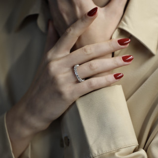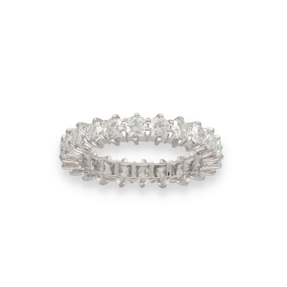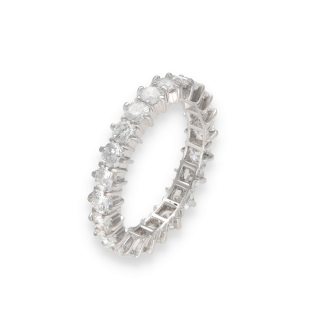 Élégante et lumineuse, cette alliance diamants tour complet se distingue par un sertissage régulier et parfaitement équilibré, garantissant une brillance homogène sur l’ensemble du doigt.