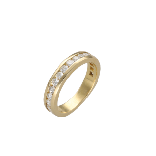 La taille ovale des diamants apporte une élégance particulière et une diffusion de la lumière très harmonieuse. Chaque pierre est soigneusement sélectionnée et sertie afin de créer un ensemble parfaitement équilibré, offrant un scintillement continu sur tout le tour de la bague.