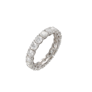 Cette somptueuse alliance en or gris 18k se distingue par son éclat remarquable et son caractère exceptionnel. Elle est sertie de 17 diamants taille ovale, chacun d’environ 0,30 carat, totalisant 5,40 carats de pierres de qualité F-VS.