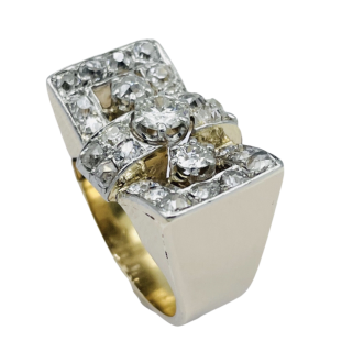 Bague Tank vers 1945. En or jaune 18 carats et platine avec environ 1,40 carat de diamants taille ancienne qualité H-SI Dimensions : 20 mm x 14 mm Poids brut : 10,90 gros Taille 50 Mise à la taille offerte Vendu avec Facture