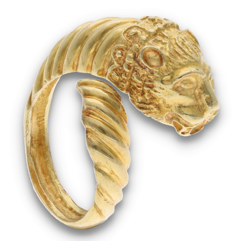 Bague Tête de Félin en or jaune 18 Cts. Fabrication grecque. Taille 56. Mise à la taille offerte.