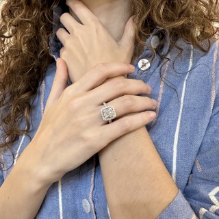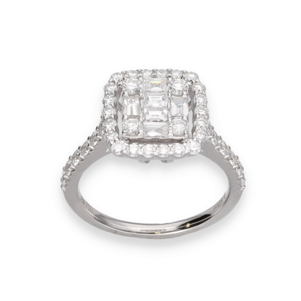 Bague en or gris 18 carats sertie de diamant taille brillant et baguettes soit 1.50 cts qualité G-VS . taille 52-53. mise à taille offerte