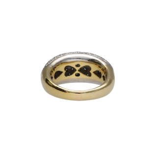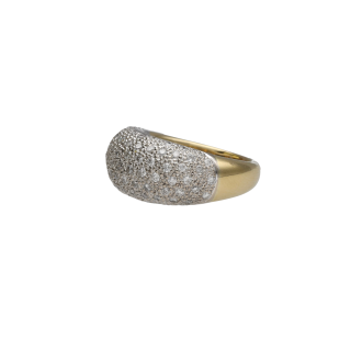 Bague jonc en or jaune et blanc 18k sertie d’un pavage de diamants pour environ 1 carat, au design large et structuré.