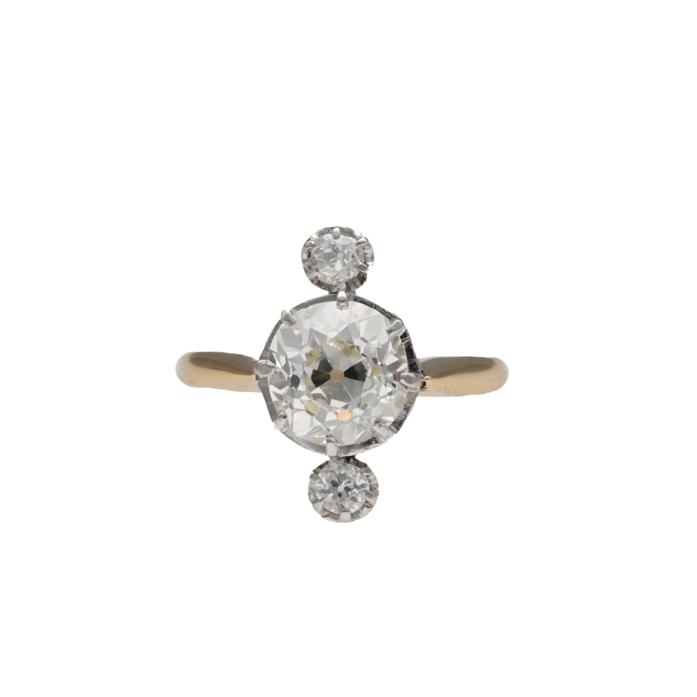 Poids des Pierres en Carat : Diamant central taille ancienne 2,40 Cts et deux diamants de 0,10 Ct taille ancienne