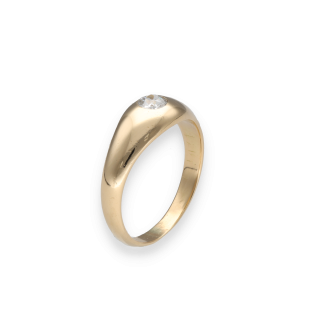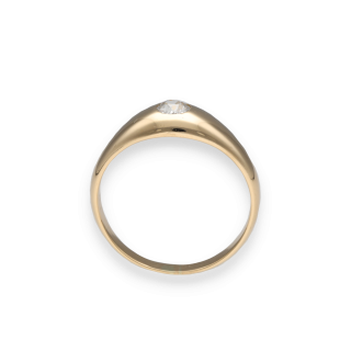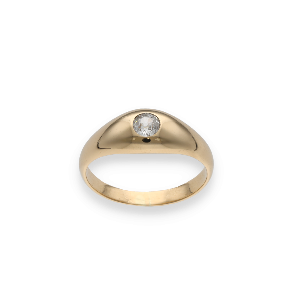 Cette élégante bague jonc anglais est réalisée en or jaune 18k et ornée d’un diamant taille ancienne, typique des créations d’avant le milieu du XXᵉ siècle.