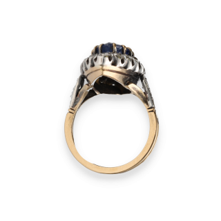 Superbe bague marquise de 1900, réalisée en or jaune et or blanc 18k, typique des élégantes créations de la Belle Époque.