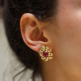 Alliant la chaleur de l’or jaune, l’intensité des rubis et la brillance des diamants, ces boucles d’oreilles sont idéales pour sublimer une tenue habillée ou compléter une collection de bijoux vintage haut de gamme.