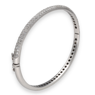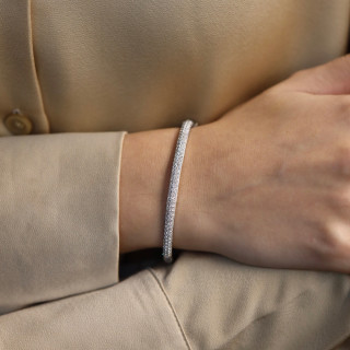 Ce bracelet jonc ouvrant en or gris 18 carats incarne le parfait équilibre entre élégance contemporaine et brillance joaillière.