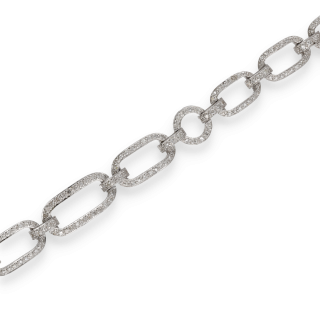 Élégant et d’un grand raffinement, ce bracelet en or blanc 18k est entièrement pavé de diamants totalisant environ 2,00 carats, offrant un éclat exceptionnel grâce à leur brillance homogène.