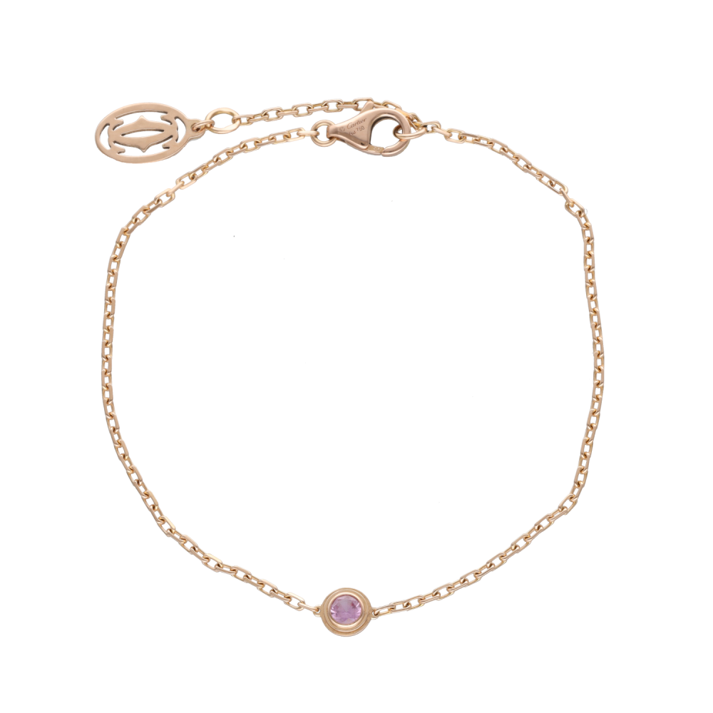 Ce bracelet Cartier d’amour incarne toute la délicatesse et le raffinement de la maison Cartier. Réalisé en or rose 18k, il séduit par son élégance discrète et son saphir rose qui apporte une touche de douceur et de féminité à l’ensemble. Son motif fin de 4,5 mm souligne un design subtil, pensé pour être porté au quotidien comme lors d’occasions plus habillées. Sa longueur ajustable de 16,5 cm ou 18,5 cm permet un porté confortable et élégant au poignet. Cette pièce porte la référence de marque B6037300 et est accompagnée de sa boîte et de ses papiers d’origine de 2016, des éléments appréciés qui renforcent son attrait. Proposé à 780€, ce bracelet Cartier d’amour est une création intemporelle, idéale pour enrichir une collection ou offrir un bijou emblématique au charme précieux et délicat.