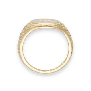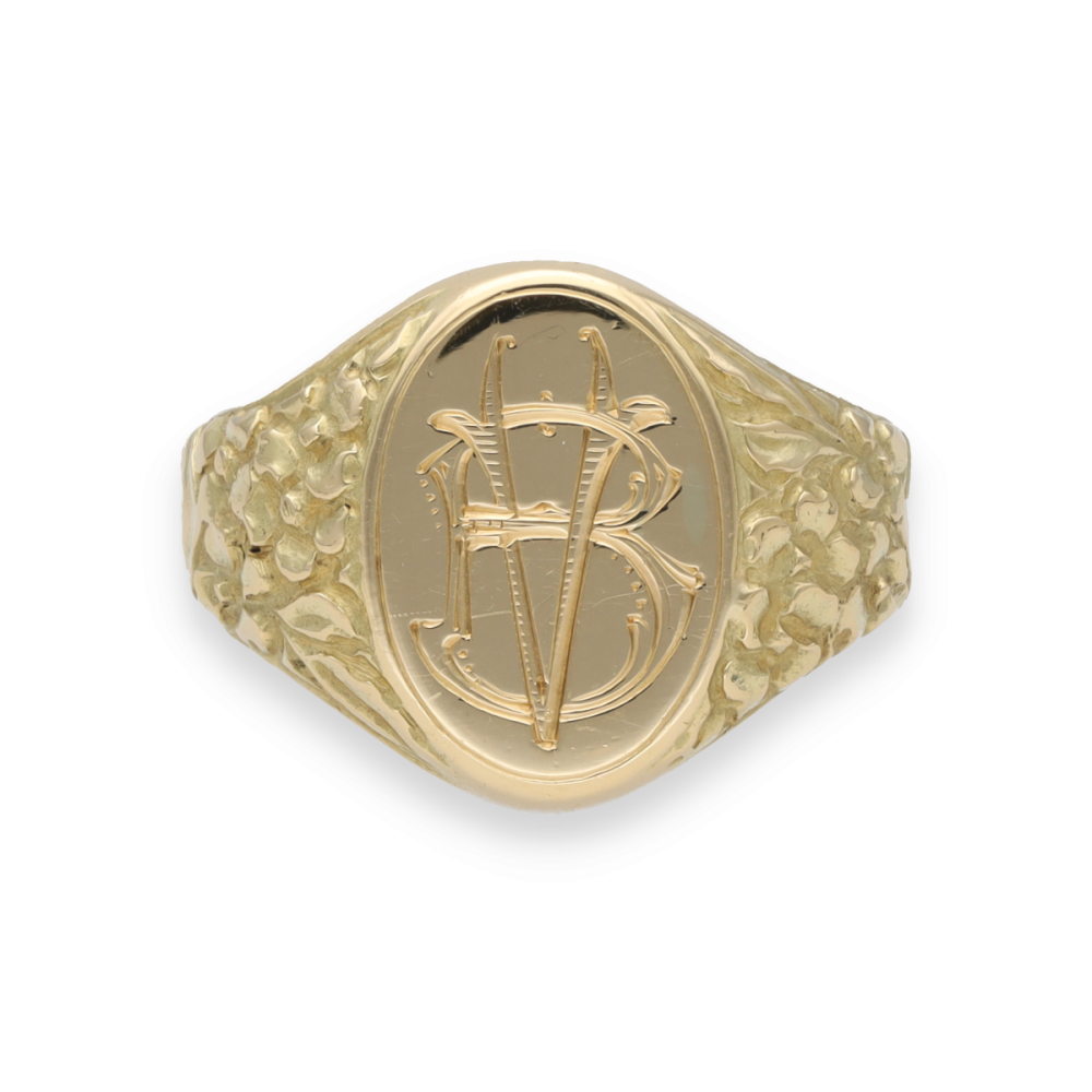 Ce bijou de caractère se distingue par sa gravure fine et soignée, représentant des motifs décoratifs et les initiales “BV”gravées à la main. Ces dernières peuvent être effacées et remplacées par vos propres initiales, gravées artisanalement dans notre atelier parisien.