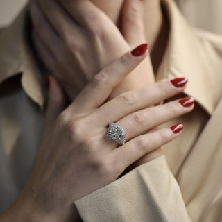 L’ensemble forme une bague équilibrée, prestigieuse et extrêmement raffinée, parfaite comme bague de fiançailles haut de gamme ou comme pièce joaillière d’exception.