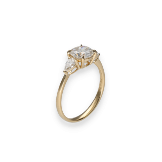 Autour de ce diamant central, deux diamants taille poire, totalisant 0,31 carat de qualité G-VS, apporte profondeur, lumière et élégance à l’ensemble, tout en soulignant la pierre principale sans la dominer.