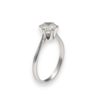 La monture épurée souligne un diamant naturel de 1,13 carat, présentant une couleur I et une pureté VS1, offrant un excellent compromis entre brillance, transparence et présence visuelle. Cette qualité confère à la pierre un éclat remarquable et une grande finesse au porté.