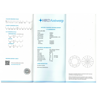 Ce solitaire est accompagné de son certificat HRD, attestant des caractéristiques gemmologiques du diamant et de son authenticité, gage de qualité et de valeur patrimoniale.