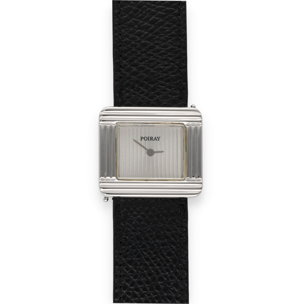 Elle est animée par un mouvement à quartz précis et fiable, et s’accompagne de deux bracelets interchangeables, permettant d’adapter le style de la montre à toutes les tenues — un concept novateur et signature de la Maison Poiray.